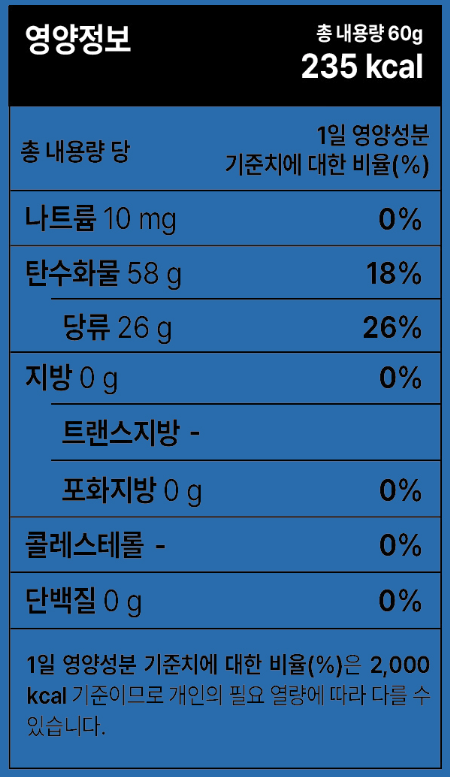 | 1000mg x 60정 _총 60g 185Kcal | 이소말트 (307.40 mg) | 30.7% | 설탕 대체 감미료, 혈당 부담 낮음, 저칼로리 | 국내산 |