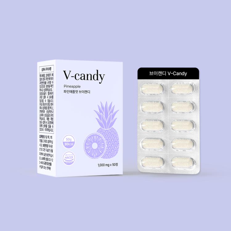 브이캔디는 파인애플 유래 브로멜라인 효소를 중심으로 한 소화·순환 밸런스 포뮬라 캔디입니다.브로멜라인이 단백질 분해와 염증 완화를 도와 식후 더부룩함과 붓기를 자연스럽게 완화합니다.비타민C와 아미노믹스가 피로 회복과 대사 활성을 돕고, 이노시톨과 아연이 체내 순환 밸런스를 조율합니다.